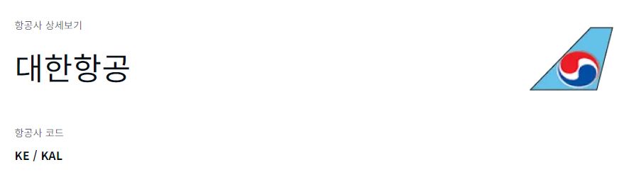 항공사 코드 : KE / KAL