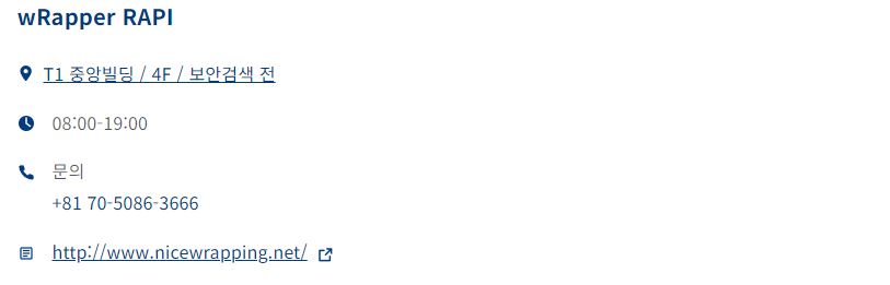 아쉽게도 3터미널에는 수하물 래핑(랩핑) 서비스가 제공되지 않아요. 2터미널과 가깝기 때문에 불편하시더라도 2터미널로 이동해서 진행하는 편이 좋으실 것 같아요!