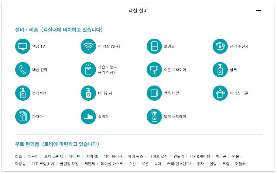 비즈니스 호텔임에도 필요한 것들은 대부분 갖춰져 있어서 크게 신경쓸 필요가 없어요. 특히 샴푸, 컨디셔너, 바디워시는 생각보다 너무 괜찮아서 좋았어요. 아래에 적힌 무료 편의품은 로비에서 직접 수령해서 방으로 올라가야 해요.