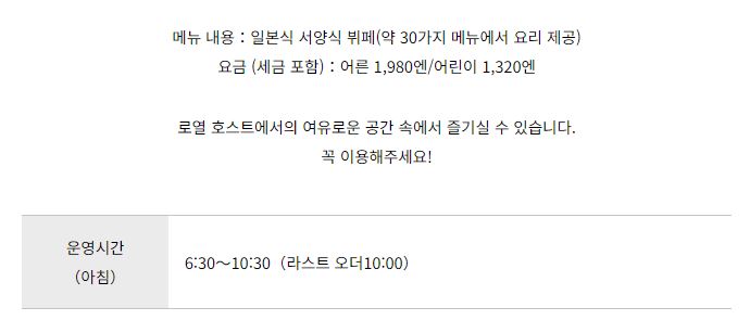 '소테츠 프레사인 히가시 신주쿠' 호텔 조식 정보에요. 2가지로 운영하고 있는데 뷔페식 또는 로열호스트라는 레스토랑을 운영하고 있어요. 대체로 가격은 조금 비싼 편이에요. 10분 정도 걸어가면 신주쿠역이 나오기 때문에 가능한 조식을 드시는 것보다는 나가셔서 드시는 것을 추천드려요.