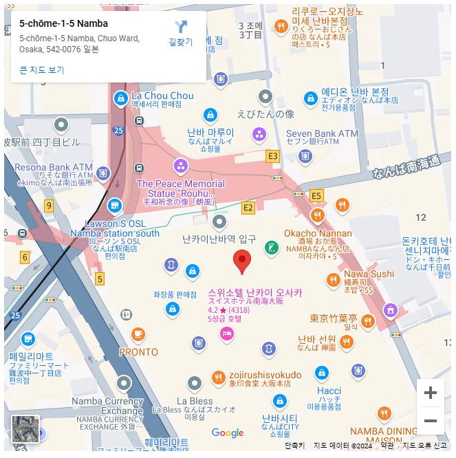 한글 : 542-8510 오사카부 오사카시 주오구 난바 5-1-5