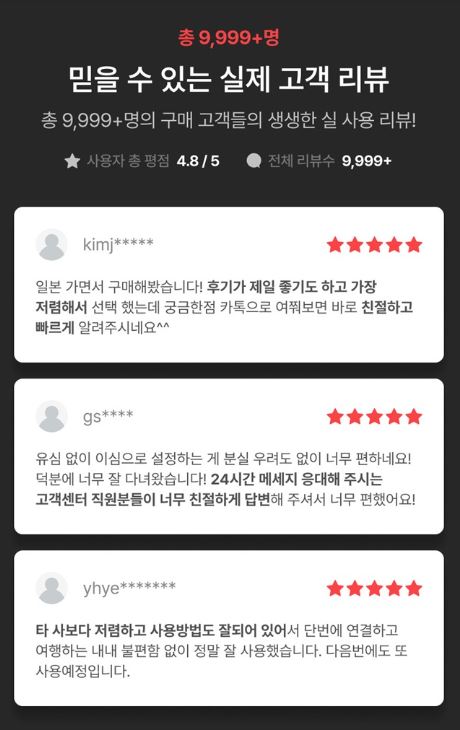 저도 이렇게 평점이 높은 점을 믿고 직접 구매해서 사용했습니다.