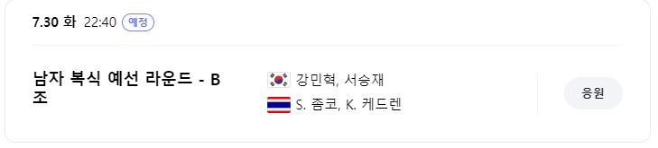 출전 선수 : 강민혁 선수, 서승재 선수