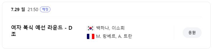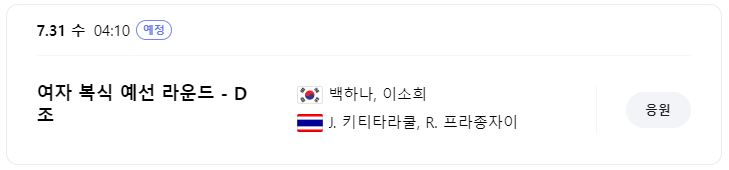 출전 선수 : 백하나 선수, 이소희 선수