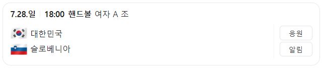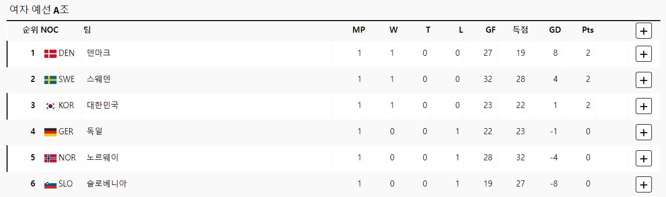 첫 경기 독일전을 치르고 앞으로 4경기가 남아 있어요. 같은 A조에 속해 있는 슬로베니아, 노르웨이, 스웨덴, 덴마크와의 경기일정 알아보도록 할게요. 다음 경기는 28일 일요일 저녁 6시 슬로베니아와의 경기에요!